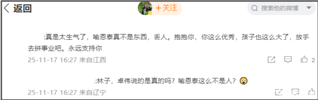 还有网友赶去史林子社媒评论区留言支持,鼓励她放手去拼事业。
