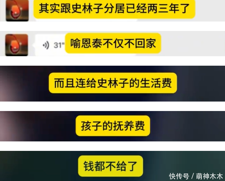 总结一下卓伟爆料内容,原来喻恩泰和史林子已经分居两三年了,喻恩泰在外拍戏,不回家也不给妻子生活费,更重要的是还不给孩子抚养费。